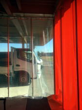 コンクリート工場さんの注文で、休憩場の間仕切りビニールカーテンになります。裾はチェーンが入っています。